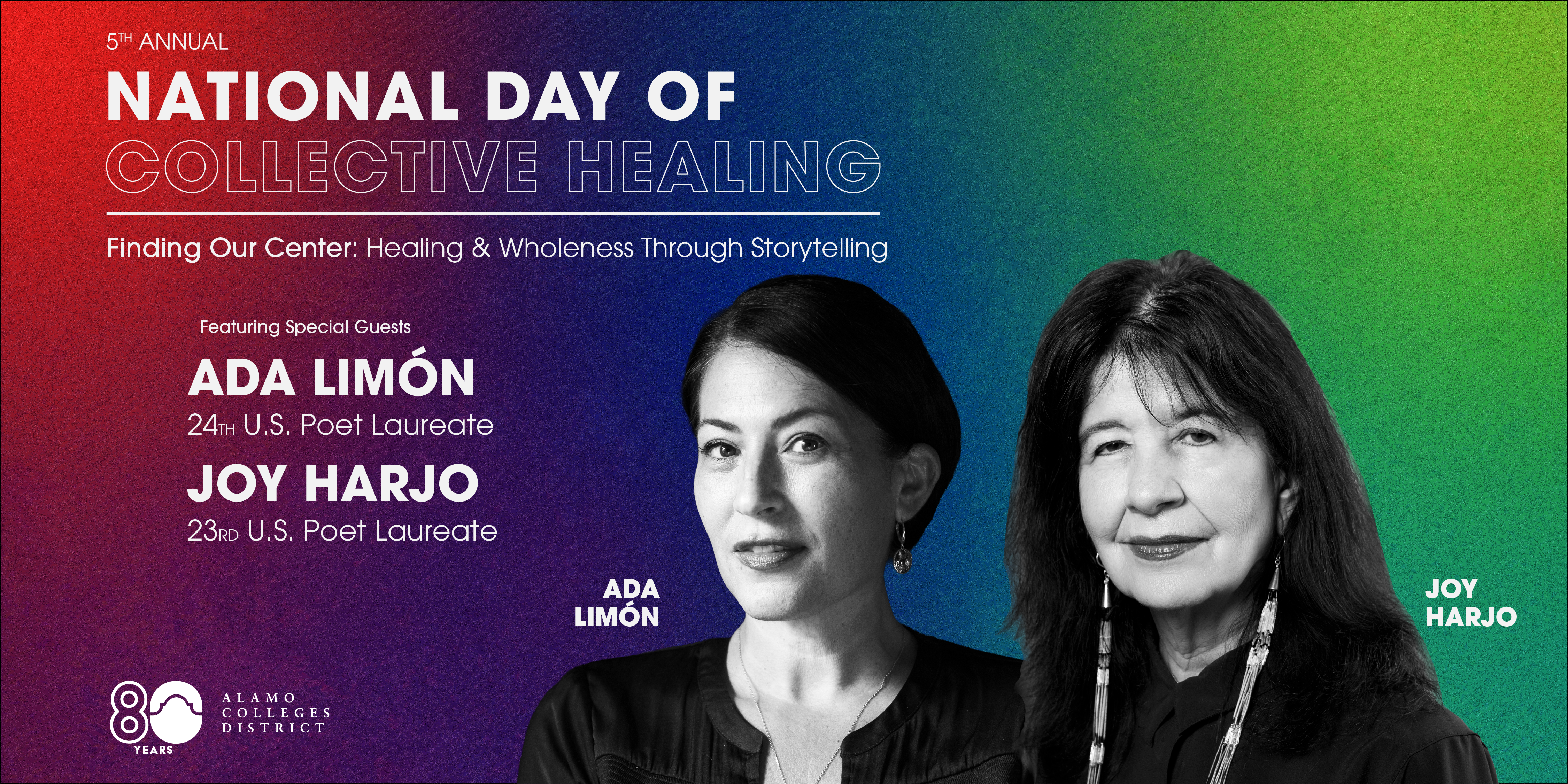 The Alamo Colleges District is proud to announce it will welcome former U.S. Poets Laureates Joy Harjo and Ada Limón for an evening celebrating the 5th Annual National Day of Collective Healing.