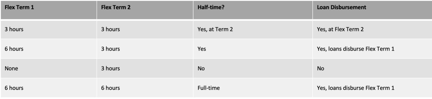 - Flex classes do not negatively affect your financial aid. A few things to keep in mind, is that students will get two separate disbursements, one at the beginning of the 8-week Flex I term, and one at the beginning of the 8-week Flex II term.