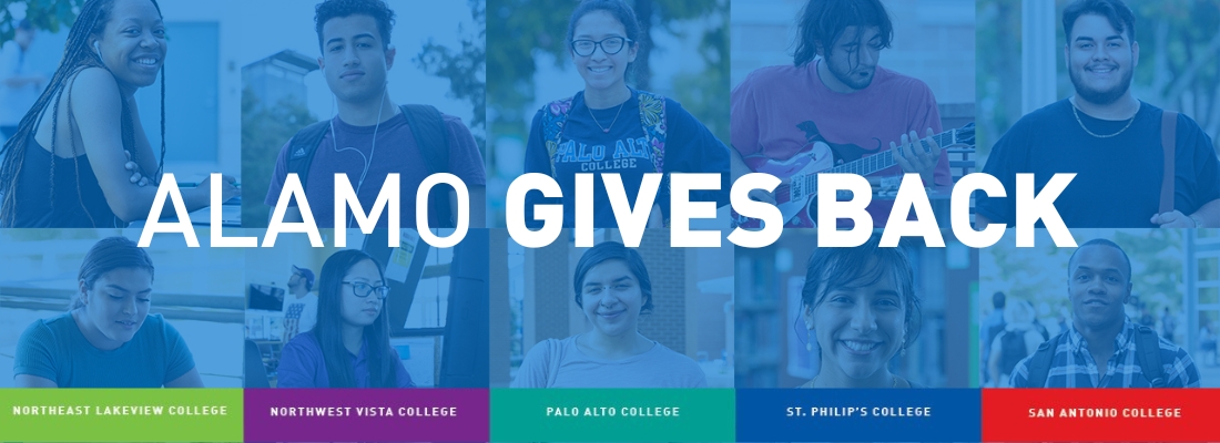 What are My Options for Supporting our Students and Community?By pledging a gift today, you’ll be creating opportunities for local community members that otherwise may not exist. Alamo GIVES BACK allows you to contribute to essential causes that improve the quality of life throughout our community: