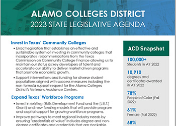 Your Alamo Colleges District team will advocate to ensure the legislature not only appropriately funds our colleges but also provides us the necessary resources and tools for a strong regional and state economy.