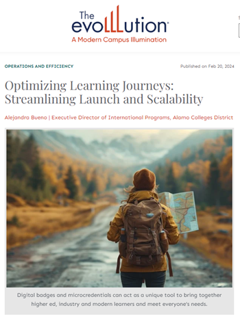 By Alejandra Bueno Alejandra Bueno had a published article in Education magazine EvoLLLution discussing digital badges used a an effective tool in international education. https://evolllution.com/optimizing-learning-journeys-streamlining-launch-and-scalability