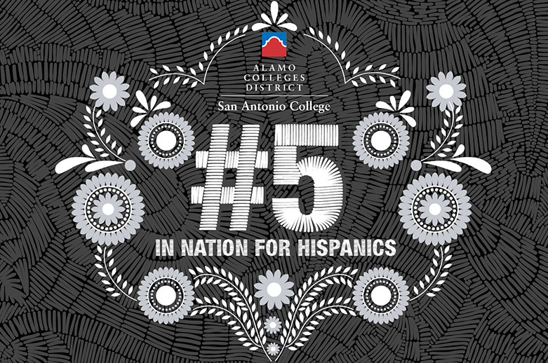 Up three spots from last year, San Antonio College ranks No. 5 in the nation for the number of graduates who are Hispanic. Previously, SAC was ranked No. 8 in 2018 and No. 4 in 2017 for the total number of Hispanics earning a degree or certificate.