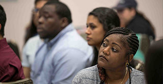 04---A student listens as the Summer 2018 classroom series at St. Philip's College known as Jessica's Project conveys the dangers of shaken baby syndrome in a teen pregnancy prevention awareness project presentation using computerized mannequin babies as training aids. The event for 130 of the college's vocational nursing and natural science students took place June 28 in the college's Campus Center building in San Antonio's Denver Heights neighborhood. (SPC Photo by Julysa Sosa)