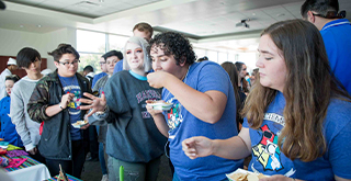 CAPTION: The 2018 St. Philip’s College Best Tasting Salsa Scholarship Competition, the premiere heat and all you all you can (politely) eat event in San Antonio’s $4 billion tourism community and a one-hour judged salsa specialty food contest for two-person teams of local high school student chefs from La Vernia, Memorial, South San, East Central, Poteet, Madison, O’Conner, Southside, Alamo Heights, Samuel Clemens and Taft high schools, attracted a diverse audience of salsa lovers to the Turbon Student Center at the college’s 1801 Martin Luther King Drive campus. (SPC images by Julysa Sosa)