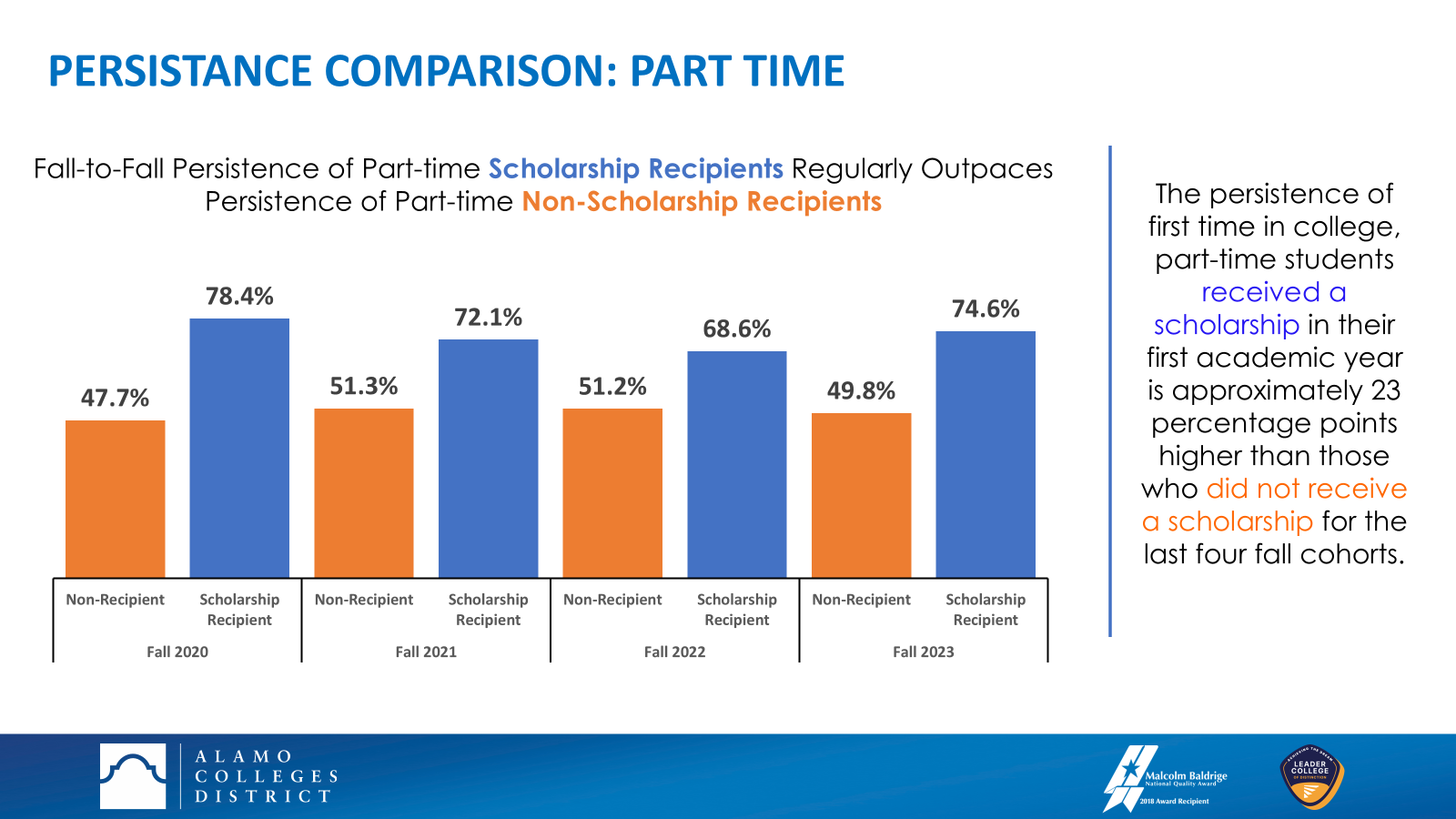 The data below reflects Alamo College Foundation Scholarships awarded during the academic year. These figures include both scholarship and grant funds but exclude Alamo Promise last-dollar awards.