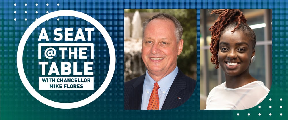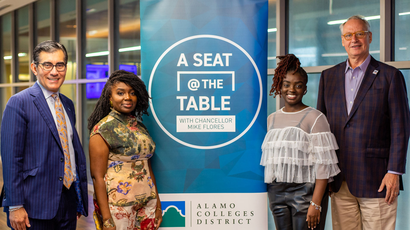 Dr. Taylor Eighmy, UTSA President, and San Antonio College graduate and current UTSA Student, Nia Houston, recently took part in A Seat at the Table with Chancellor Dr. Mike Flores for a conversation on how ACD and UTSA are creating seamless pathways to student success.