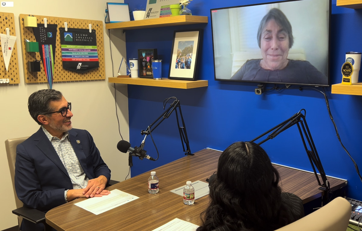 Dr. Kanter and Keren Morin Lugo, Palo Alto College student and AlamoPROMISE Scholar, recently took part in a A Seat at the Table with Chancellor Dr. Mike Flores to explore the impact of Promise Programs and their pivotal role in shaping the future of education and social mobility.