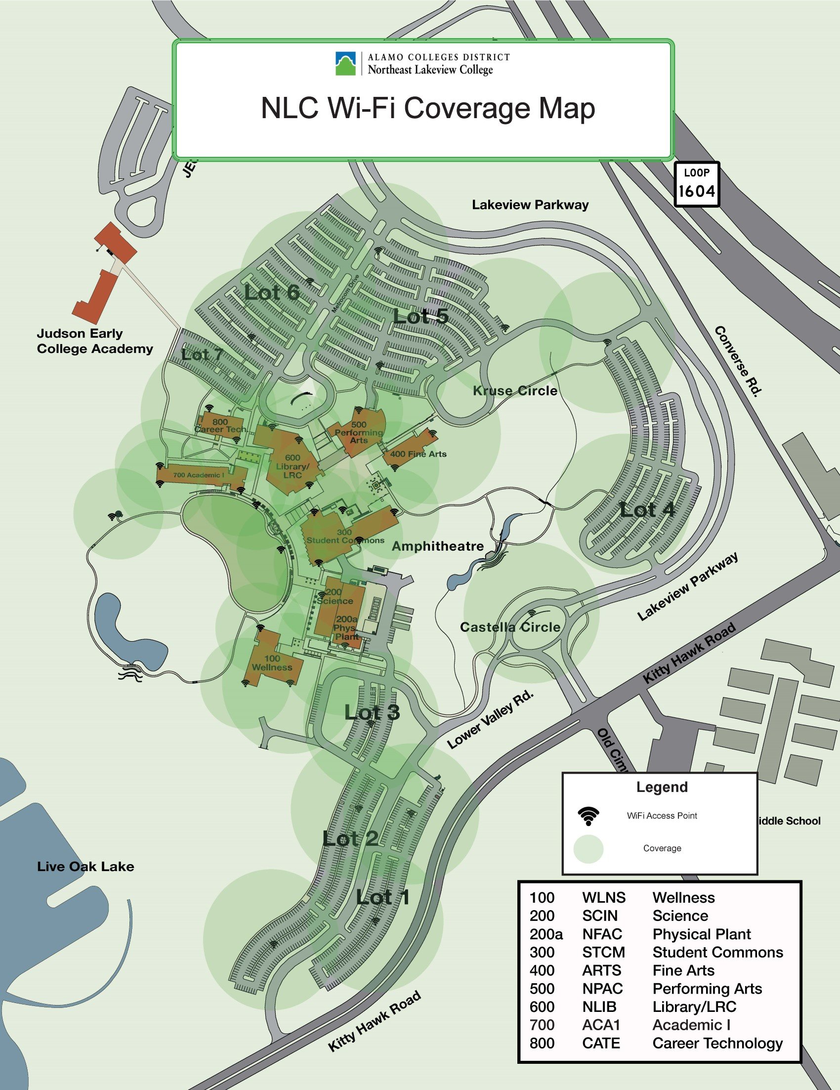 Alamo_Guest provides fast wireless internet access to students, faculty, staff and guests. Wireless Access is available inside every building at Northeast Lakeview College and some outdoor areas on campus.
