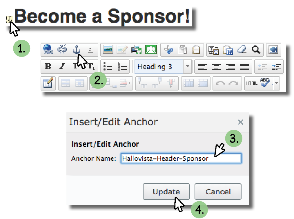 3. In “Anchor Name”, type a name for the anchor. Don't use spaces.