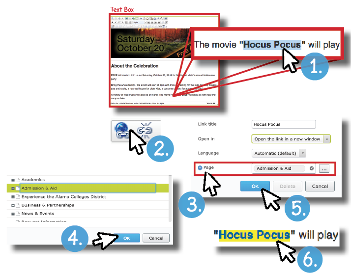 4. Browse for an internal page you want to link to and click “Okay”.