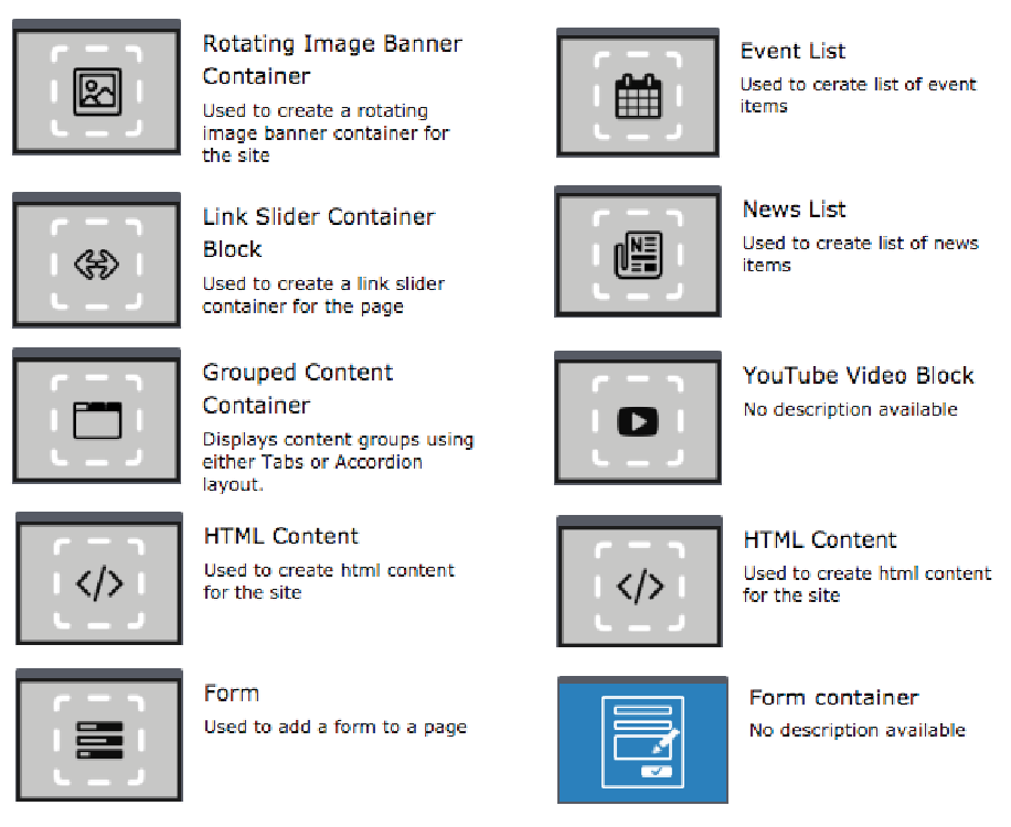 Drop zones are used to hold blocks, these zones are capable of holding content in different sections of the page.