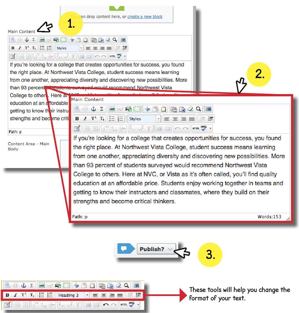 2. Make your edits inside the content area.
