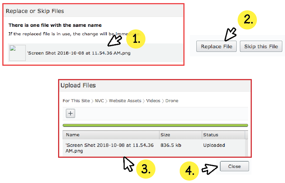 3. Another window will pop up confirming that your new file replacement has been uploaded.
