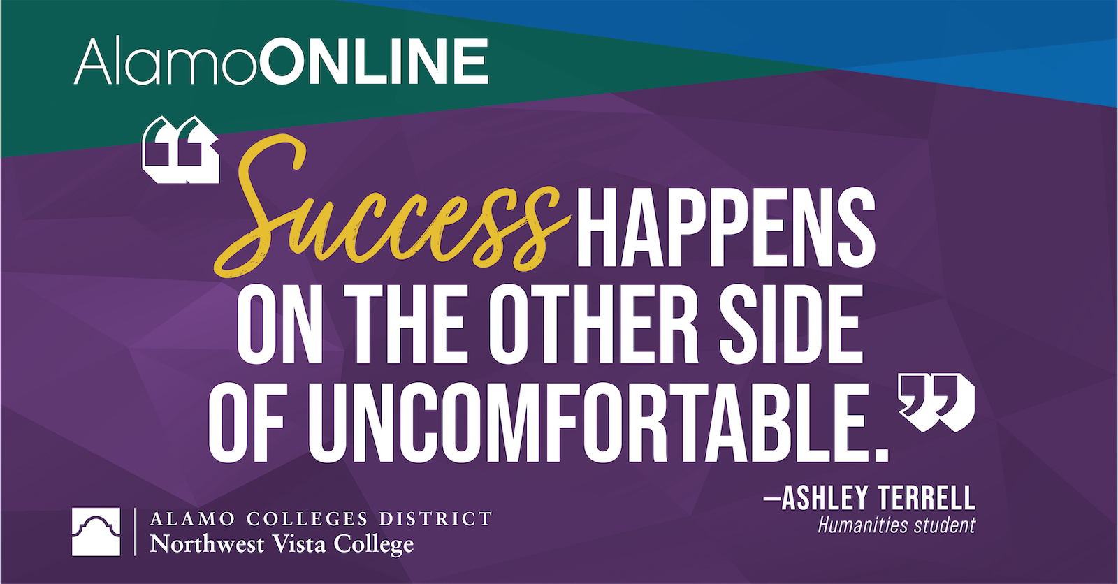 Her goal is to earn a master’s degree and become a library generalist, gaining a political science or global affairs degree in the process. Although she speaks with enthusiasm about the quality of her online education at Northwest Vista College, she credits the support, resources, and leadership opportunities offered to non-traditional students for her student success.