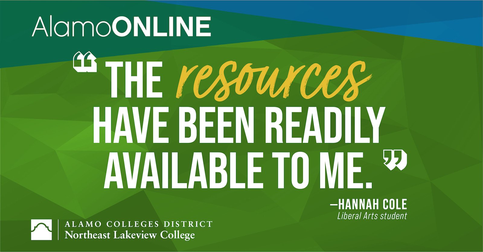 For Hannah, online learning at Northeast Lakeview College felt like a natural fit. She could start her degree while remaining near her family, which was essential to her. Equally important, however, was the college support she received as an online student. She shares, “I feel like the resources have been readily available to me if I have a problem. It [was] very easy to call someone, get an answer, and fix the problem.” With such efficient support, Hannah could focus her energy on successfully completing her coursework.