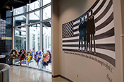 On the second floor of the Victory Center, students will find the Victory Center Den and Lounge. Complete with foosball and pool tables, board games, televisions, gaming systems and desktop computers, the space is meant to provide respite for those who need to take a step back and relax or have a safe, quiet space outside of the library to be productive with other student veterans.