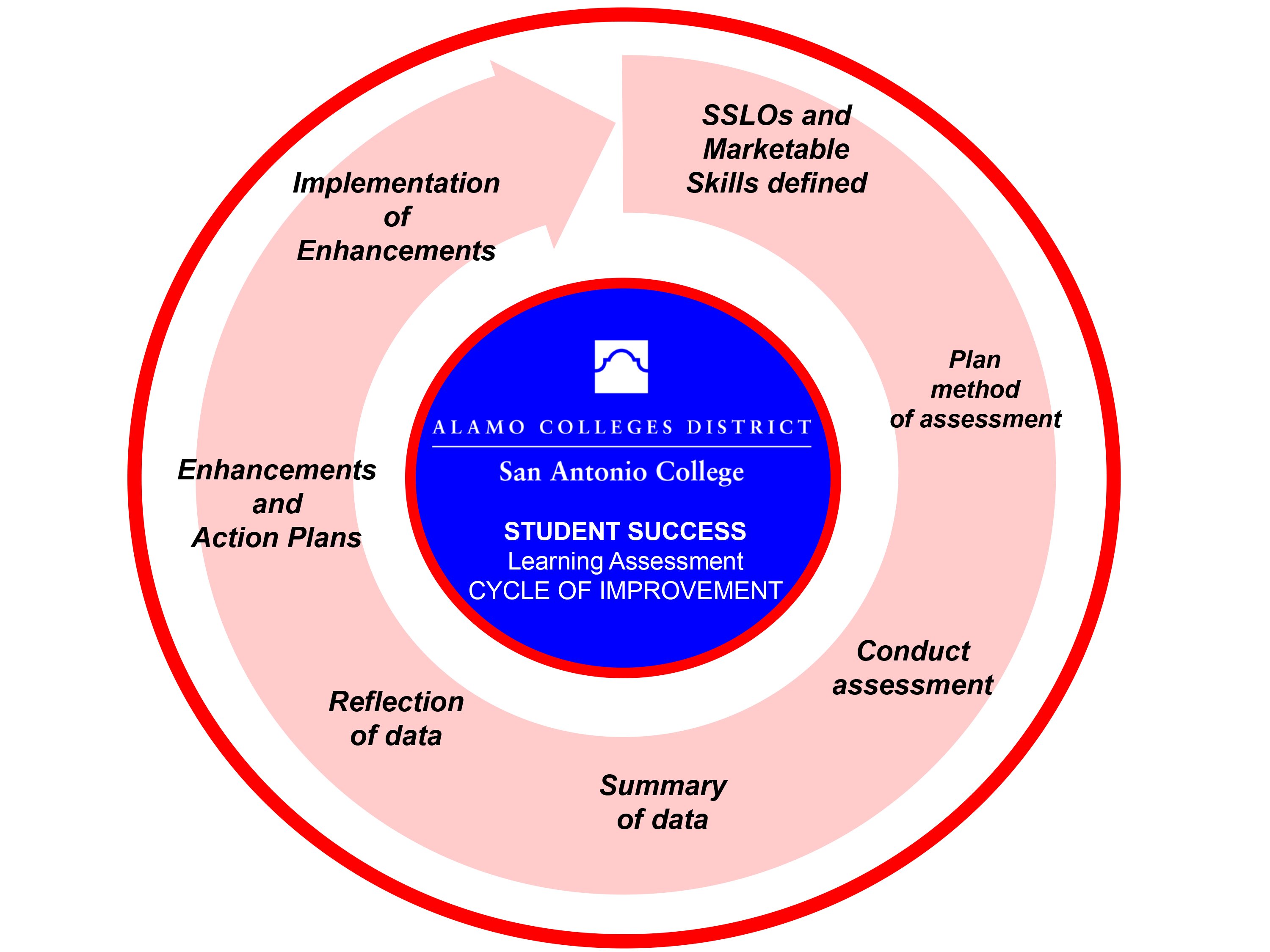 Student Success Learning Outcomes specify what will be learned in Student Success areas and what the student will be required to know or demonstrate. At San Antonio College, we believe that every interaction with a student is an opportunity for learning.