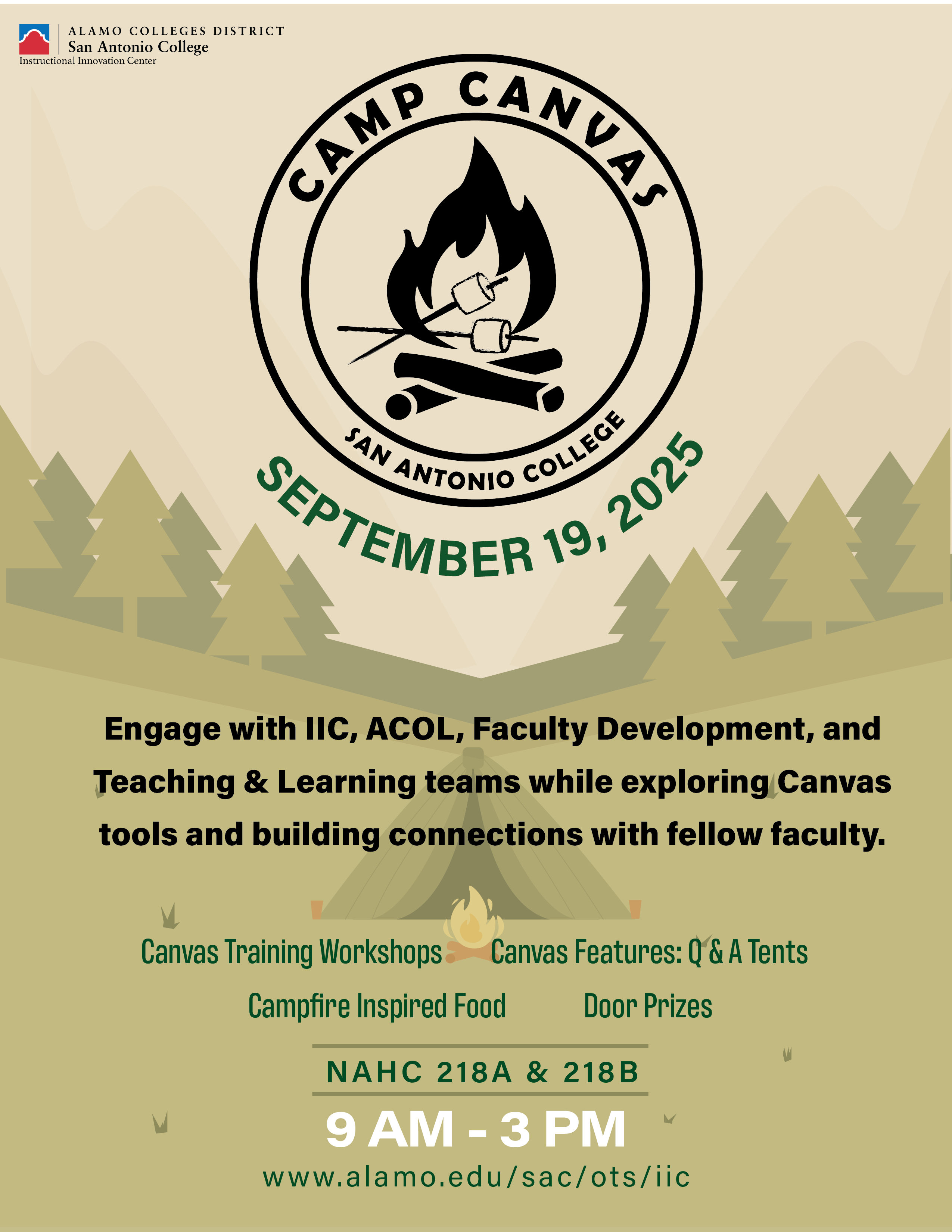 Camp Canvas 2025Gather 'round the campfire for a day of learning, connection, and Canvas exploration SEPTEMBER 19, 2025 Join us for an engaging event where you'll connect with IIC, ACOL, Faculty Development, and Teaching & Learning teams — all while exploring powerful Canvas tools and building your faculty fellow connections. _______________________________________ Camp Highlights
