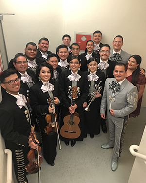 Photo caption: SAC's mariachi group, Estrellas del Alamo, pose with members of Members of Mexico's Mariachi Vargas de Tecalitlan.