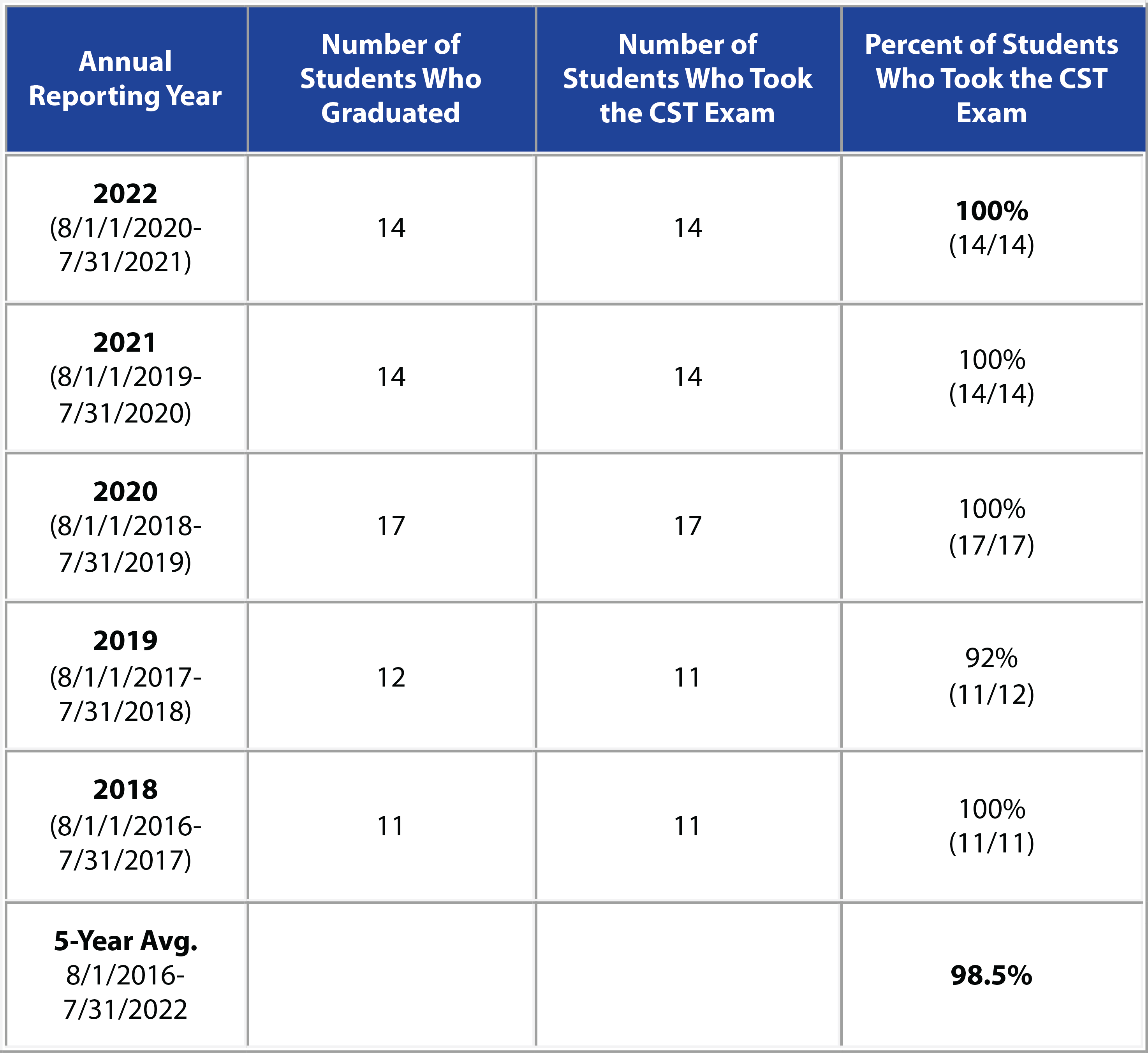 The Association of Surgical Technologists (AST) was established in 1969 with the mission of ensuring quality patient care. Today, AST is proud to acknowledge more than 55,000 members and represents the interests of more than 80,000 practitioners nationwide. AST actively promotes education for the profession; legislatively advocates for practitioner recognition; supports state-level constituent organizations; and has committed to students as the future of the profession. See the National Board of Surgical Technology and Assisting or Association of Surgical Technologists for details. See also CAAHEP for further information or contact CAAHEP at 9355 113th Street N., #7709, Seminole, FL 33775-7709 or phone at 727-210-2350 or by email at mail@caahep.org. |